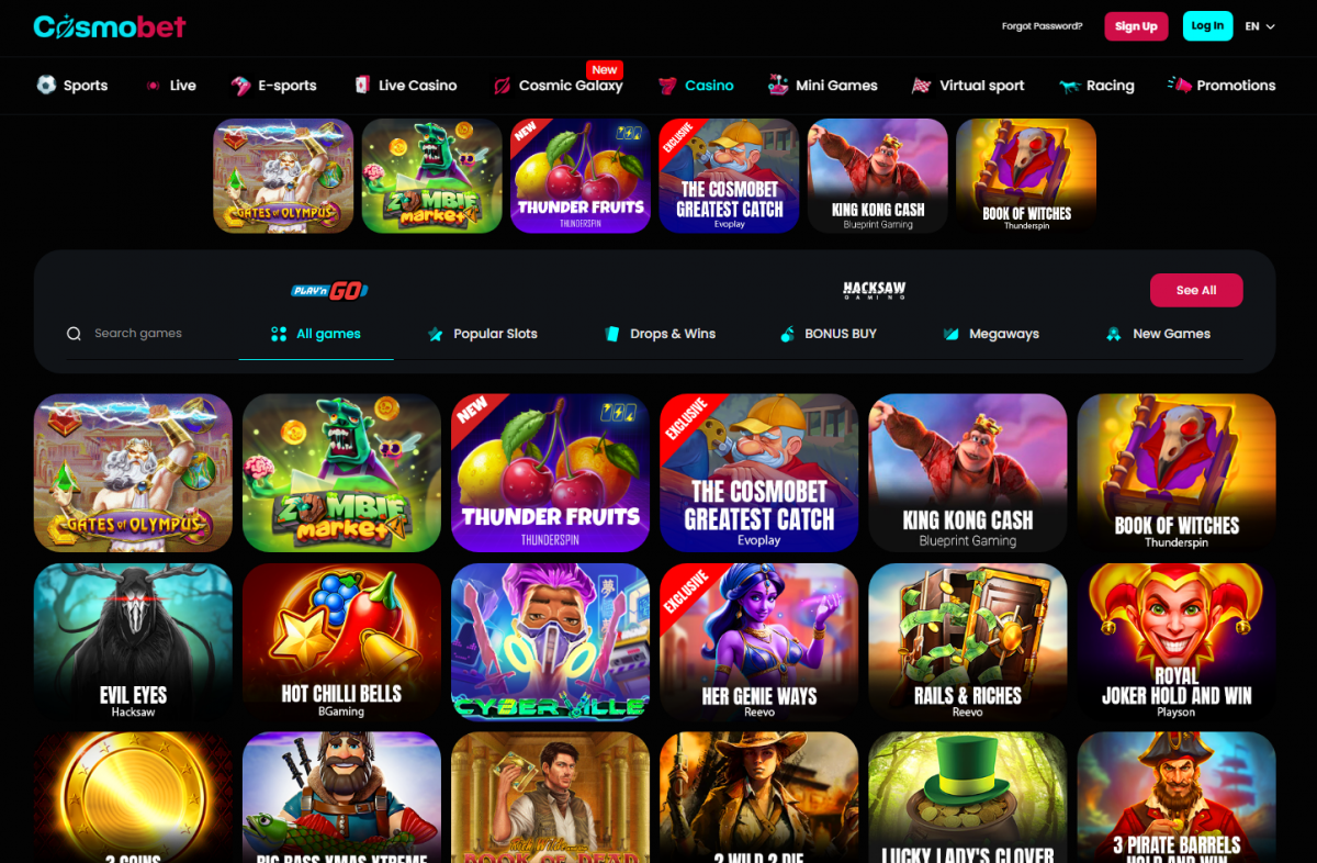 Explore Cosomobet's games and sportsbook.